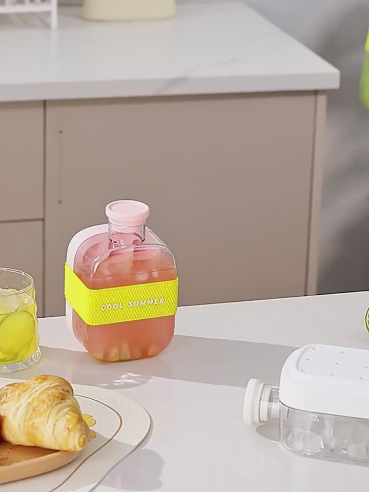 Summer Ice Cube Tray With Straw 2-in-1 Ice Cube Maker Bottle